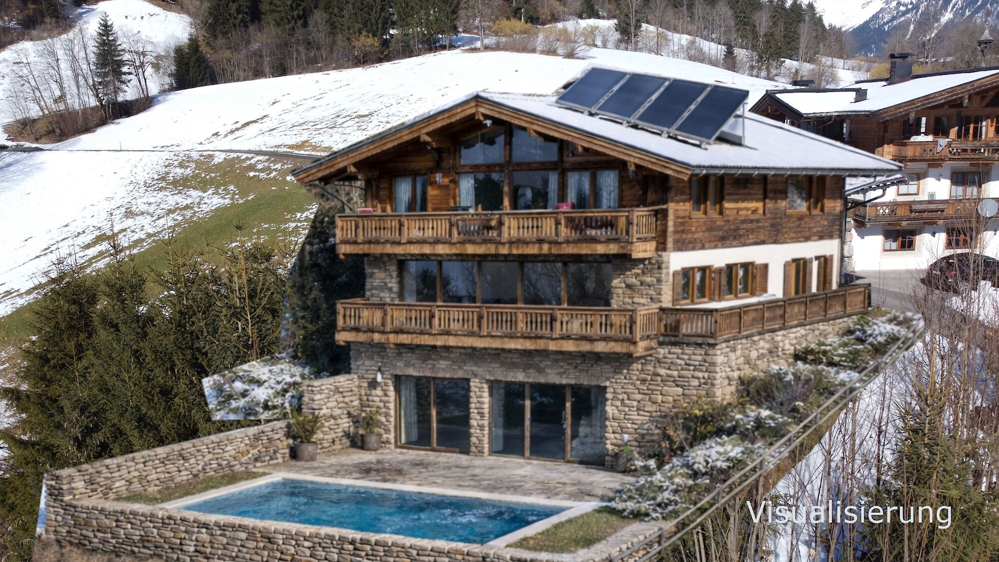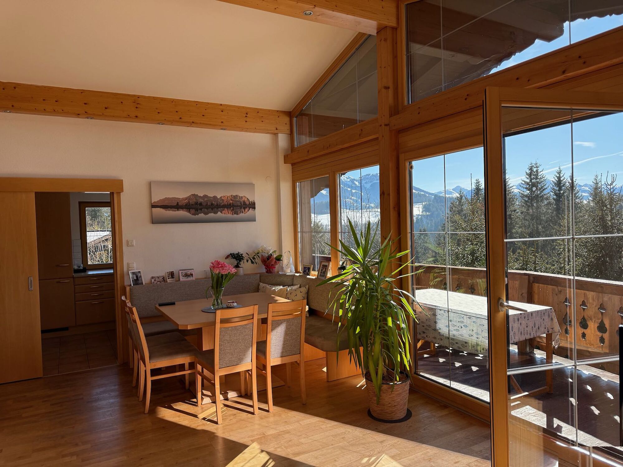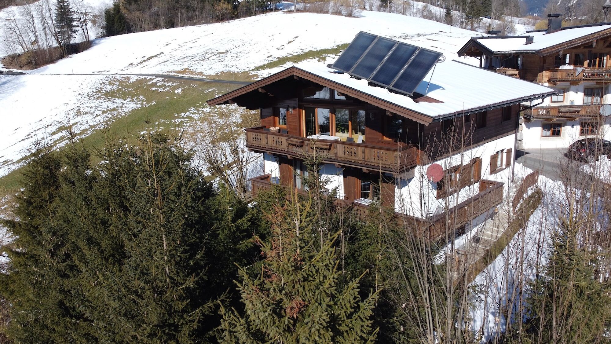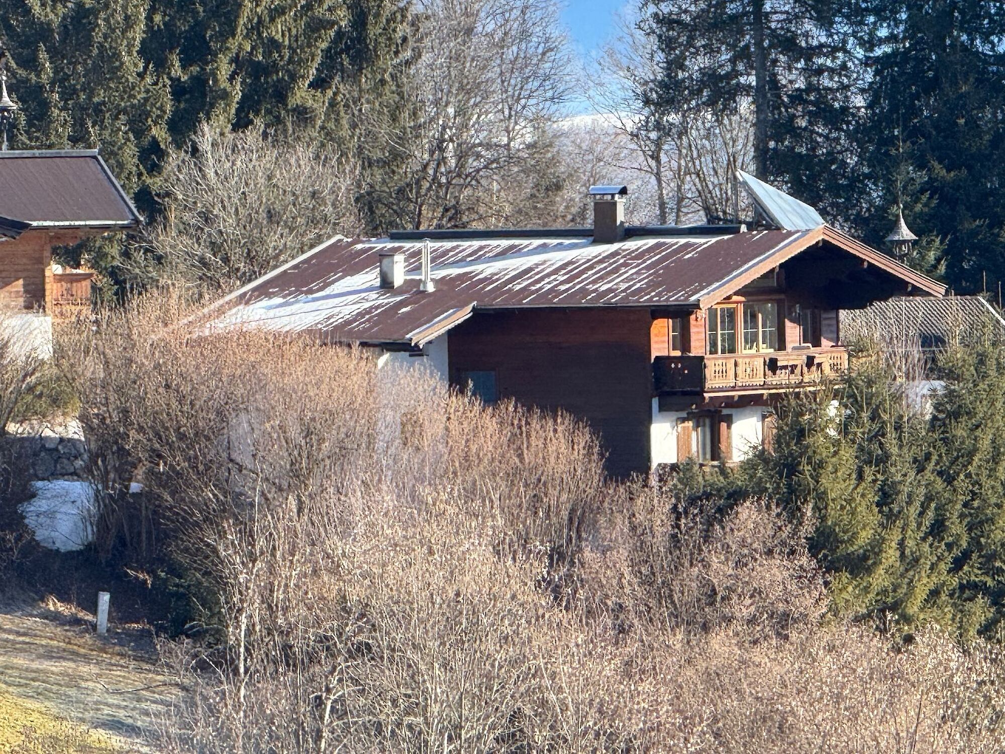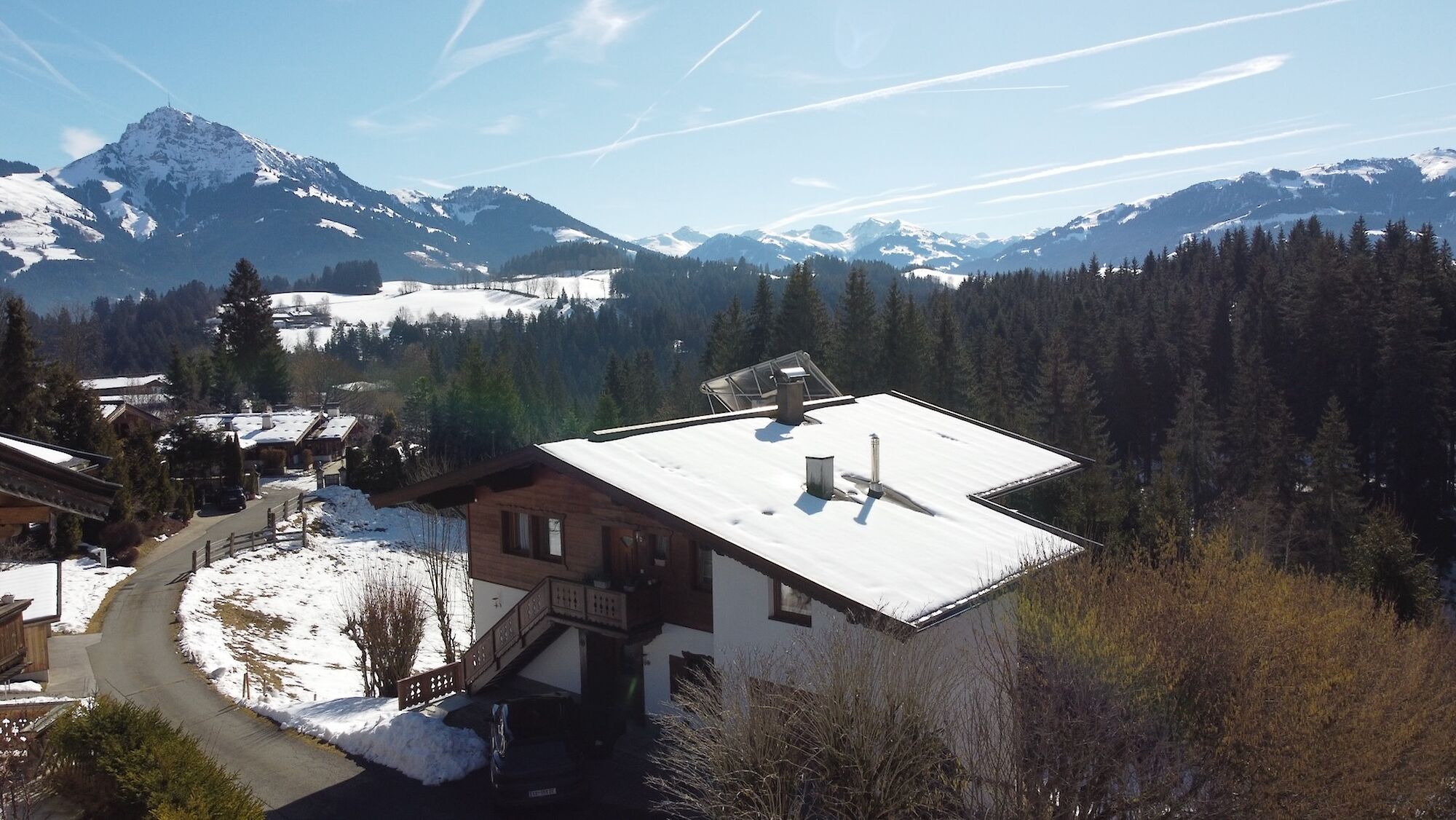Dieses Landhaus befindet sich in absolut unverbaubarer, ruhiger und sonniger Lage am Astberg in Reith bei Kitzbühel, eine der begehrtesten Wohngegenden der Region. Von hier aus genießen Sie einen atemberaubenden Panoramablick auf den Wilden Kaiser, das Kitzbüheler Horn, den Hahnenkamm sowie die imposanten Südberge. Ein Ausblick, der zu jeder Jahreszeit begeistert. Die Immobilie besteht derzeit aus zwei separaten Wohneinheiten. Jede Wohnung verfügt über einen Wohnraum mit Küche, zwei Schlafzimmer sowie ein Badezimmer und ein separates WC. Das Haus ist vollständig unterkellert. Der Keller ist auf der Südseite komplett offen gestaltet, wodurch sich dieser Bereich ideal für eine Adaptierung zu zusätzlichem Wohnraum eignet. Das Haus kann auch als Einfamilienhaus genutzt werden.