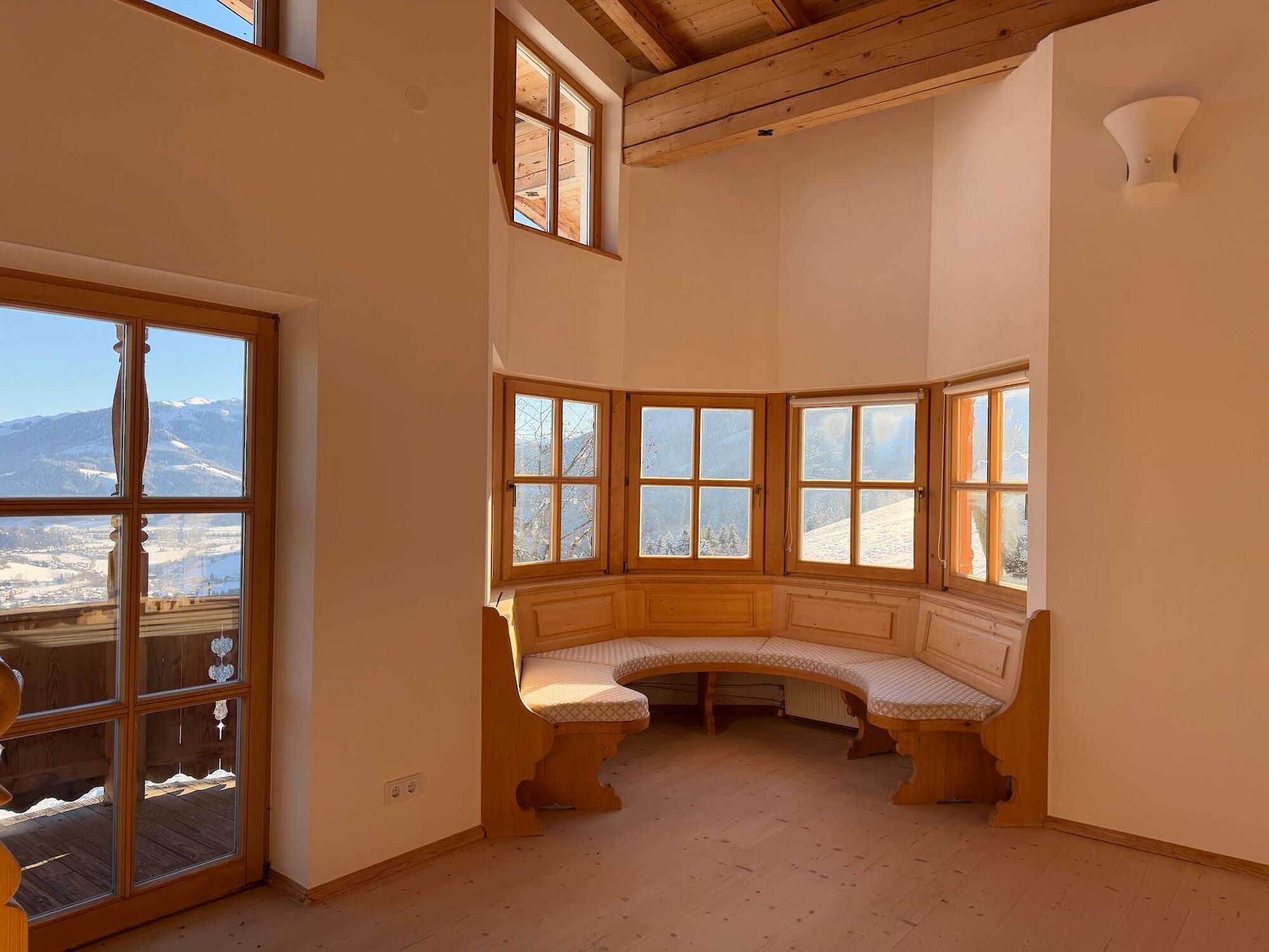 Dieses charmante Landhaus befindet sich in absoluter Premiumlage mit unverbaubarem Weitblick, ein echtes Juwel für Naturliebhaber und Wintersportbegeisterte. Die direkte Anbindung an die Skipiste macht es zum idealen Rückzugsort für alle, die exklusive Wohnqualität mit alpinem Lebensgefühl verbinden möchten. Das Haus besticht durch seine hochwertige Ausstattung und großzügige Raumaufteilung. Der gemütliche Wohnbereich mit Kachelofen und offenem Kamin lädt zum Verweilen ein und schafft eine warme, einladende Atmosphäre. Eine offene Galerie verleiht dem Raum zusätzliches Flair und Großzügigkeit.