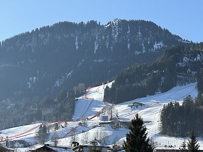 Im Inneren öffnet sich ein weitläufiger Wohnbereich mit Kamin und unverbaubarem Blick auf die Streif. Die offene Küche ist großzügig integriert und bildet das kommunikative Zentrum des Hauses. Drei Schlafzimmer mit jeweils hochwertig ausgestatteten Bädern und eine Spa-suite mit großem Bad sowie ein Rückzugsbereich mit Bad bieten Privatsphäre auf hohem Niveau. Ein separates Gäste-WC sowie eine Garderobe ergänzen den großzügigen Eingangsbereich. Der private Wellnessbereich mit Indoor-Pool, Sauna und Infrarotkabine schafft Unabhängigkeit von Saison und Wetter. Ein Wintergarten erweitert den Wellnessbereich. Ein Weinkeller, eine Garage sowie eine moderne Haussteuerung mit Bussystem und Alarmanlage und Überwachungskameras unterstreichen die technische Qualität.