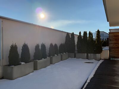A spacious living room with an openplan kitchen, ideal for cozy evenings or social gatherings; two bedrooms, quietly situated and versatile, a bathroom, a guest WC, and a large terrace, a true highlight with plenty of space to relax. An elevator provides barrier-free access, and a cellar storage unit and a garage parking space are included.