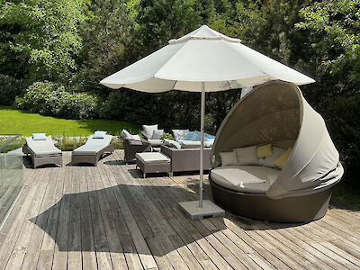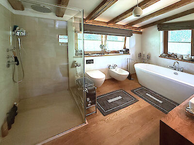 The heated garage with direct access for two cars and six parking spaces on the large forecourt also offer plenty of space for your guests’ vehicles.