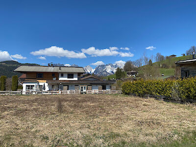 Building plot (designated residential area) in an absolutely sunny location with views of the Hahnenkamm, the Wilder Kaiser and the Kitzbüheler Horn.