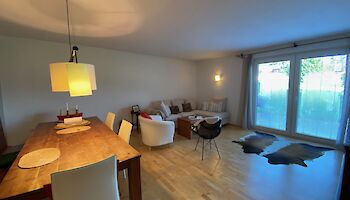 This modern single-family home is located in a unique, undeveloped location on Sonnberg. It consists of a spacious living room with an open kitchen, four bedrooms, two bathrooms and a separate storage room on the 1st floor with approx. 40 m2 as well as two cellar rooms and a double garage.