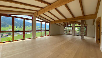 The multi-family house at the sonnberg with view onto the Hahnenkamm consists of a ground floor apartment with a living room and open kitchen, a dining area, three bedrooms as well as two bathrooms. The apartment on the second floor is equipped with a living room with open kitchen and dining area, two bedrooms and two bathrooms.